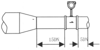 渦街流量儀表對安裝點的上下游直管段有一定要求,否則會影響介質在管道中的流場,影響儀表的測量精度。儀表的上下游直管段長度要求見圖(三) DN為儀表公稱口徑 單位:mm